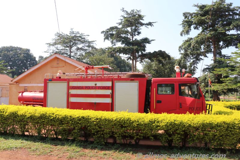 In Uganda sah es zwar aus wie eine Feuerwehr, aber der Schriftzug sagte etwas anderes. Oder übernimmt die afrikanische Polizei auch Löscharbeiten?