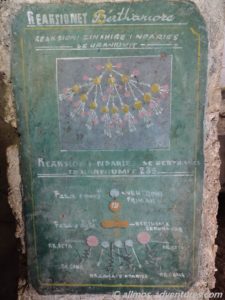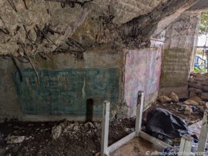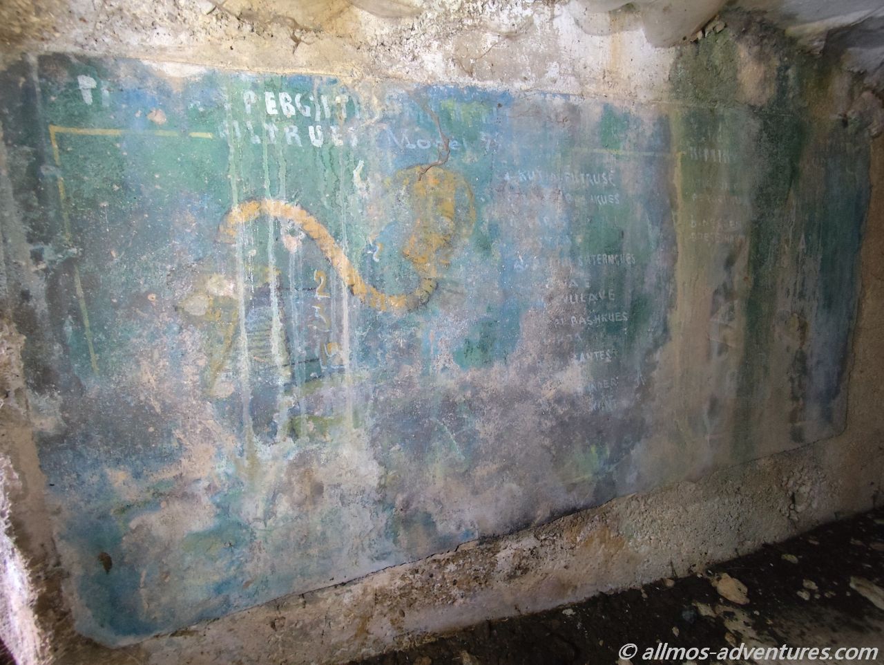 Interessant an diesen Bunkern, sind die an den Eingangsbereichen, wo die Geschütze gestanden haben, angebrachten Informationstafeln. Dabei geht es unter anderem um das Flugverhalten der Geschütze. Natürlich ist alles auf Albanisch verfasst, so dass wir nicht viel davon verstanden.