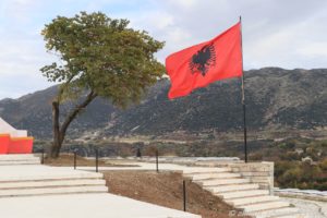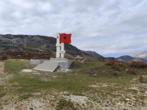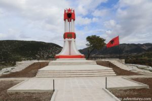 Auf die Entfernung wirkte das Memorial i Luftes se II Boterore, eine Gedenkstätte zu Ehren der in den Weltkriegen Gefallenen, wie ein Leuchtturm. Wobei uns natürlich klar war, dass es inmitten der Berge keine Leuchttürme gibt.