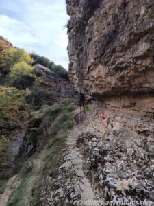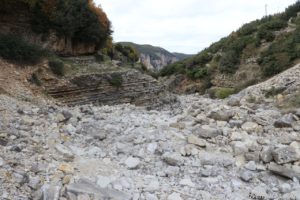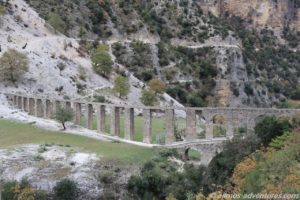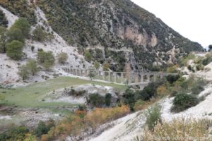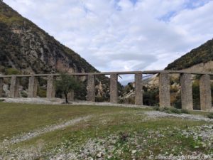 Während das Brot im Ofen war, gingen wir uns das Aquädukt näher anschauen. Theoretisch führt ein 3,7 Kilometer langer Wanderweg von hier bis zu einer alten Brücke vor Tepelena. Eine große Tafel informierte darüber. Vorbei am Flussbett. Kann man machen, kann man auch sein lassen. Wir hatten für heute schon genug erlebt und begnügten uns mit dem Gang zum Aquädukt.