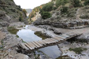 Zurück bei Allmo setzte ich Frank ab und ging noch ein wenig die Straße entlang zu einer alten, sehr schmalen, Steinbogenbrücke. Ich konnte ein paar Blicke in den Canyon mit seinem interessanten Blätterteig-Gestein werfen.