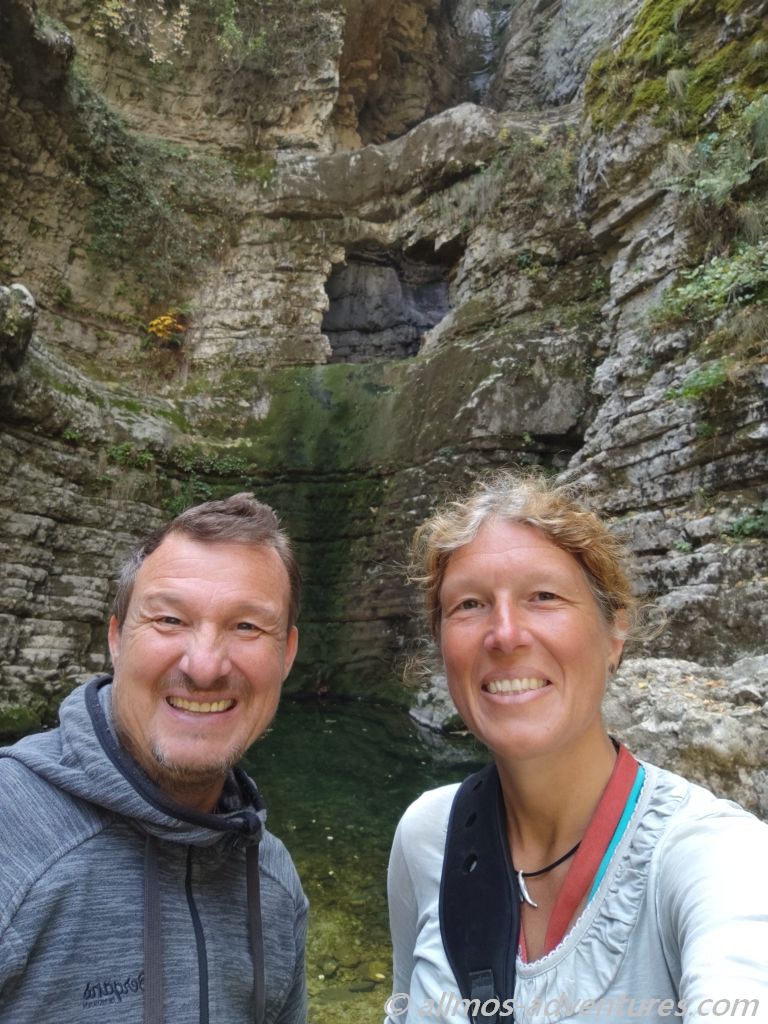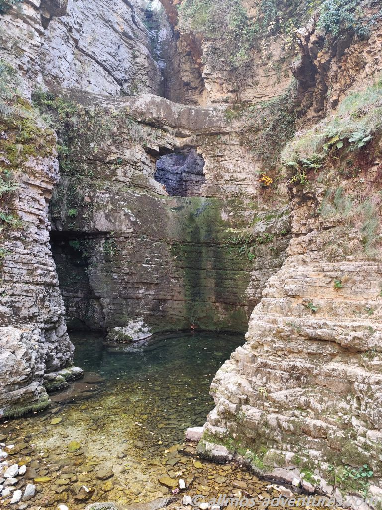 Und da alle guten Dinge drei sind, befand sich unterhalb des Beckens und des weiteren Verlaufs des Wasserfalls noch ein Felsbogen. Wirklich super schön und toll. Entdecken konnten wir diesen nur, weil im Moment kein Wasser aus dem Becken weiter hinunter in den Canyon floss und wir somit trockenen Fußes uns in dem Bereich bewegen konnten.