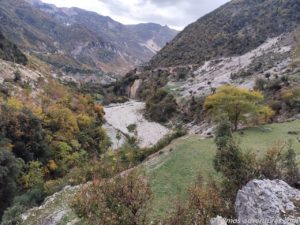 Die ehemalige Piste, die durch die Kurvelesh Region führt, ist seit ein paar Jahren geteert. Frank entdeckte auf deiner Brücke die Jahreszahl 2021, bis dahin war die Region nur schwer zu erreichen. Das nun ein Teer-Band den Weg vorgibt, ändert nichts an der wirklich wunderschönen und reizvollen Landschaft.