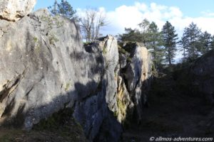 Der Rundweg hätte eigentlich noch weiter geführt, zu einer anderen Felsformation, doch dazu waren wir dann beide zu faul. Anstatt also dem nur 3,1 Kilometer langen Rundweg zu folgen, waren wir bereits nach 700 Metern zurück bei Allmo. Dies war auch gar nicht schlimm, weil es etwas zu tröpfeln begann.