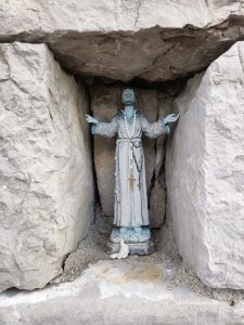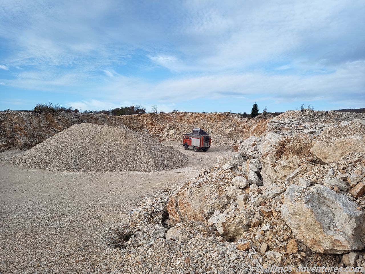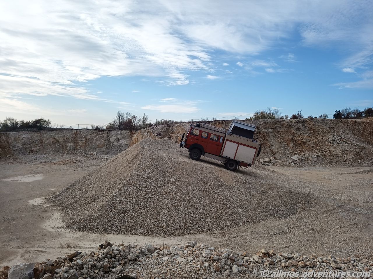 Nach dem Frühstück setzte Frank den Allmo noch in dem kleinen Steinbruch in Pose. Anschließend sahen wir uns noch den Glockenturm mit der lauten Glocke an. Also automatisch ging da gar nichts. Es muss tatsächlich irgendjemand um 6 Uhr in der Früh dorthin gefahren sein, um Sturm zu läuten.