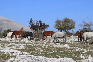 Heute begaben wir uns auf die Suche nach den Wildpferden. Davon gibt es in Bosnien unendlich viele. Denn sie wurden einfach in die Wildnis = Freiheit entlassen, als ihre Dienste durch Maschinen ersetzt wurden. Und so leben sie irgendwo in den Bergen Bosniens.
