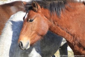 Wir bekamen nur kurz einen skeptischen Blick von dem ein oder anderen Wildpferd zugeworfen, aber ansonsten grasten sie einfach weiter und nahmen dabei langsam Kurs auf Allmo. Von zu viel Nähe hielten sie jedoch nichts, somit war Streicheln tabu.