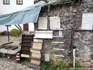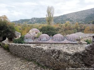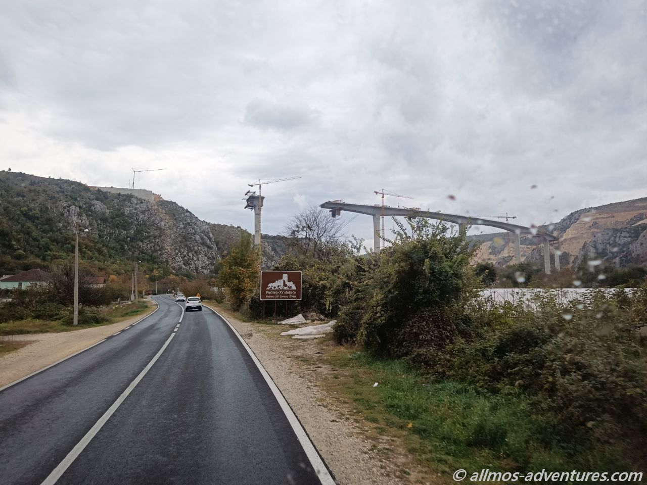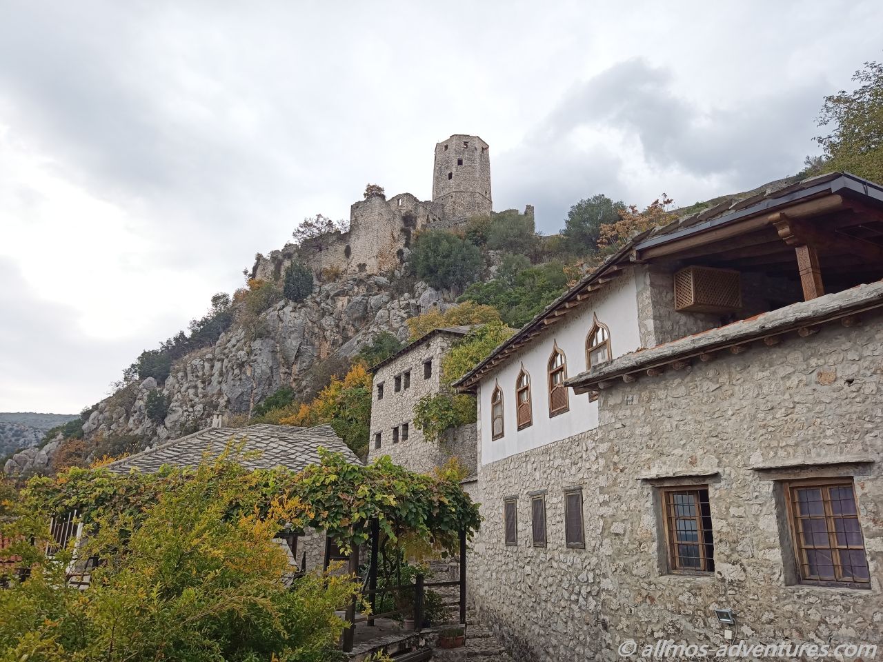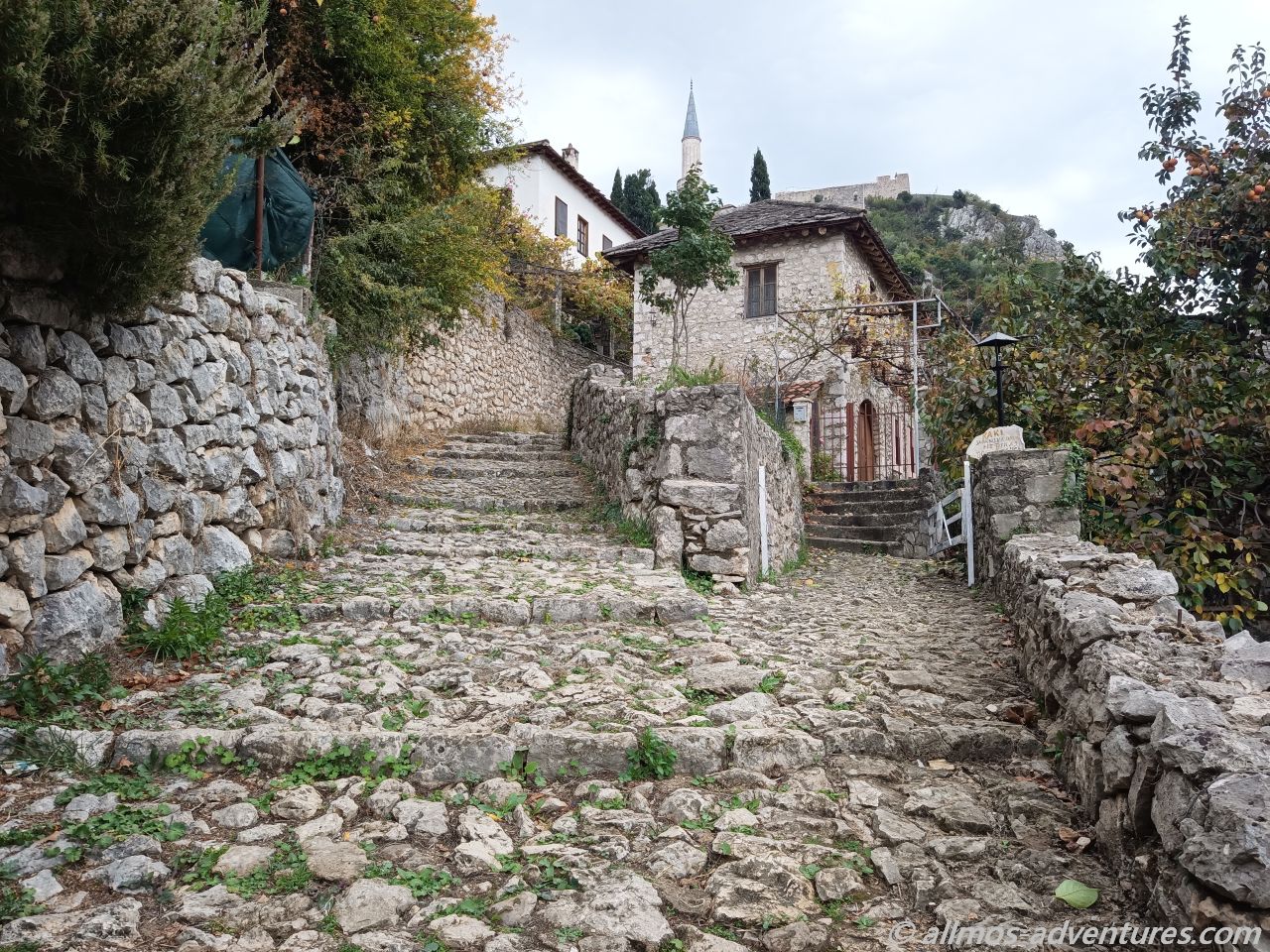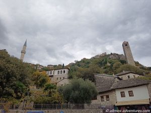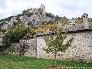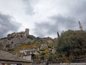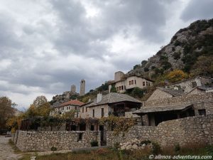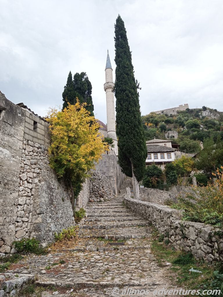 Nachdem wir mit unserer kurzen Erkundungstour fertig waren, fing es stärker an zu Regnen. Glück gehabt. Im Regen fuhren wir weiter, bis nach Pocitelj. Dort parkten wir Allmo am Seitenstrand neben der Hauptstraße. Die Regenpause nutzten wir, um schnell durch die kleinen steinernen Gassen zu spazieren. Es war nicht viel los und die wenigen Souvenirläden, die geöffnet hatten, werden heute kein großes Geld verdienen.