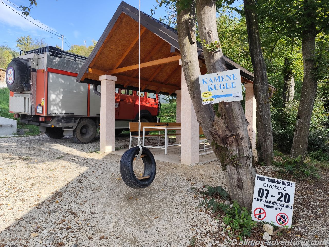 Endlich hatten wir wieder normale Straßen vor uns und bis zu den Kamene Kugle war es nun auch nicht mehr weit. Die letzte Zufahrtsstraße war dann wieder etwas schmaler. Der Parkraum vor den Steinen war frei, so dass wir ohne Schwierigkeiten einparken konnten. Damit hatte ich nicht gerechnet und war erleichtert, dass es so war.