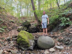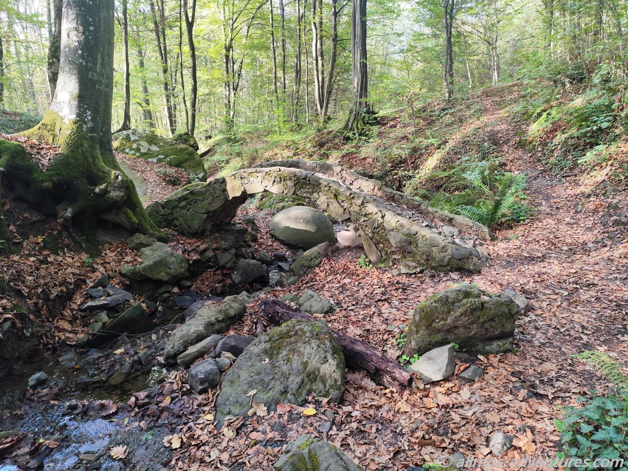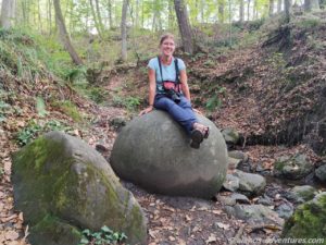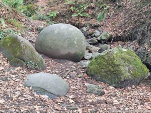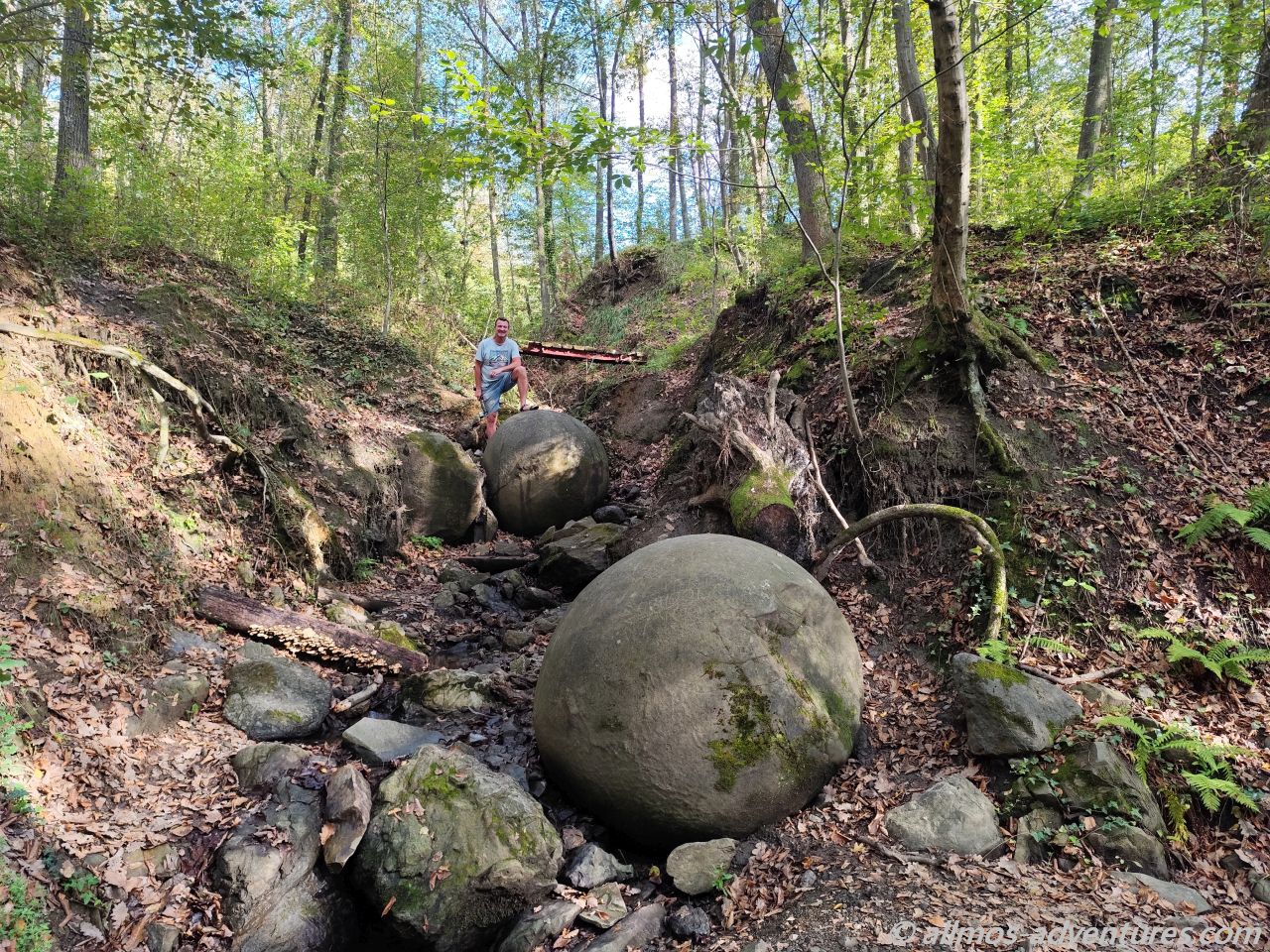 Im Wald, entlang eines kleinen Bachlaufs liegen ein paar große runde Steinkugeln verteilt. Diese sollen eine Energiequelle sein. Ich war noch so voller Adrenalin, dass ich den Kugeln direkt ein wenig Energie abgeben konnte.