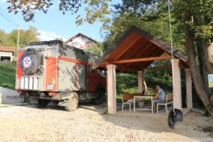 Bei der Ortschaft Zavidovici spuckte uns die schmale Straße in der Zivilisation aus. Und ganz ehrlich: Von dieser Richtung aus wären wir nie im Leben auf diese Straße gefahren. Die war einfach viel zu schmal.