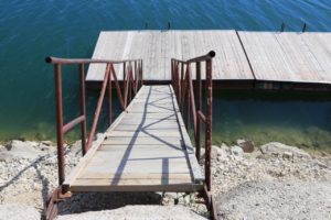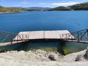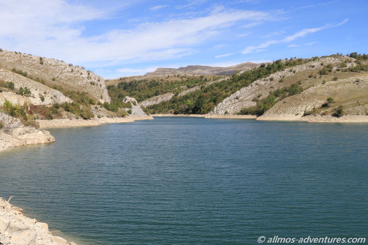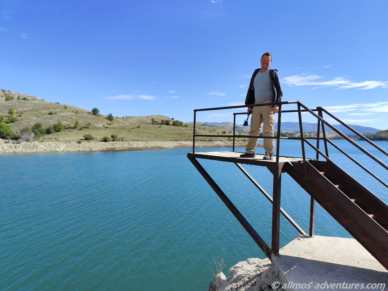 Am Stausee Klinje legten wir eine kurze Pause ein. Mal eben die Beine vertreten. Bei warmen Temperaturen hätte sich der Stausee zum Baden angeboten. Es gab eine Schwimminsel und auch einen Sprungturm. Wobei es nicht so aussah, als wenn man davon runterspringen sollte. Es sei denn, man hätte selbstmörderische Absichten. Vielleicht lag dieser Eindruck auch daran, dass deutlich zu erkennen war, dass der Stausee sonst voller ist.