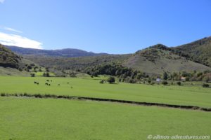 Freilaufende Kühe versperrten uns zweimal den Weg. Anstatt auf der Straße sollten die sich doch lieber auf den saftig grünen Wiesen aufhalten.