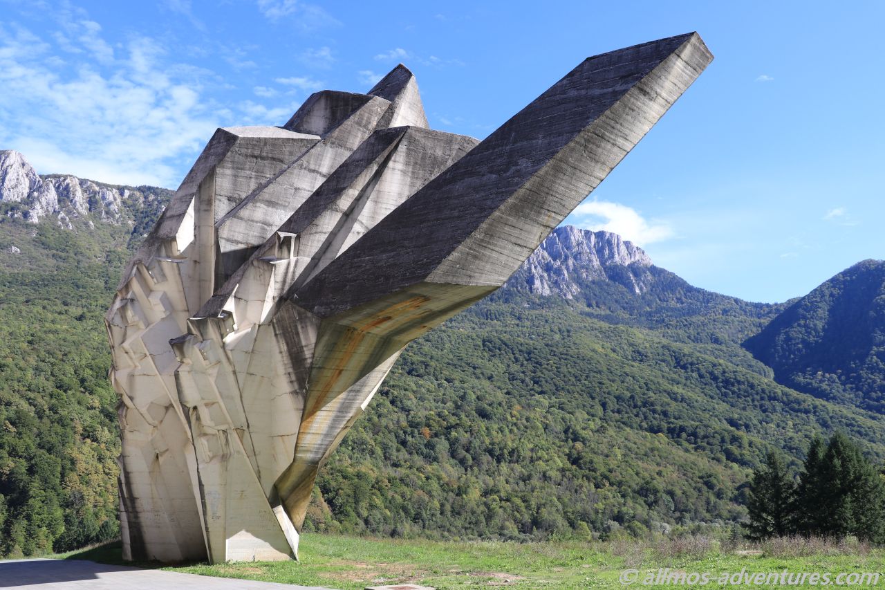Fußläufig war das Denkmal der Schlacht von Sutjeska zu erreichen. 1971 wurde dieses eindrucksvolle Denkmal zum Gedenken an die Partisanenkämpfer im zweiten Weltkrieg errichtet. Das Denkmal stellt zwei Flügel dar, die Stärke und Widerstandsfähigkeit symbolisieren.