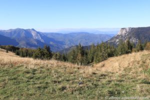 Der Weg führte fast ausschließlich durch den Wald, so dass es kaum vorstellbar war, dass sich irgendwann eine Lichtung auftut. Doch so war es. Der Wald spuckte uns aus und wir befanden uns umringt von den herrlichen Bergen, die wir vorhin noch auf der Fahrt bewundert hatten.