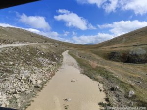 Auf einem Teilstück bestand der Bodenbelag aus Mist und Erde. Kaum zu glauben, dass so eine öffentliche Straße aussehen darf. Es interessiert hier am Ende der Welt, wo es eh kaum Verkehr gibt, wohl niemanden so wirklich, wie der Fahrweg aussieht.