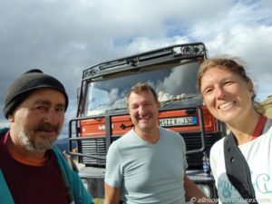 Eine Guided-Quad-Touren passierten die Piste, die unterhalb von uns entlanglief. Wir unterhielten uns noch kurz mit zwei Herren aus der Tschechei, die mit einem Gelände-Pritschenwagen unterwegs waren (auf die Marke hatten wir nicht geachtet). Diese hatten Frank gefragt, ob alles okay ist, weil er neben Allmo an seiner GoPro-Halterung schraubte.