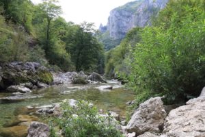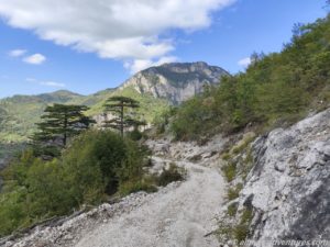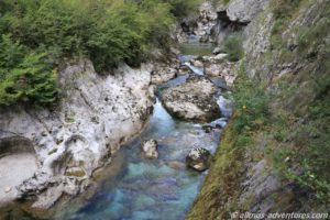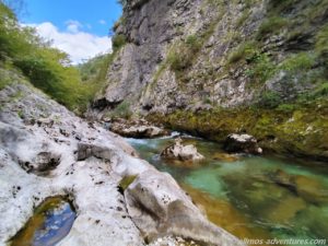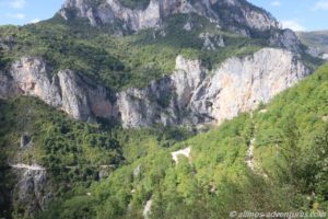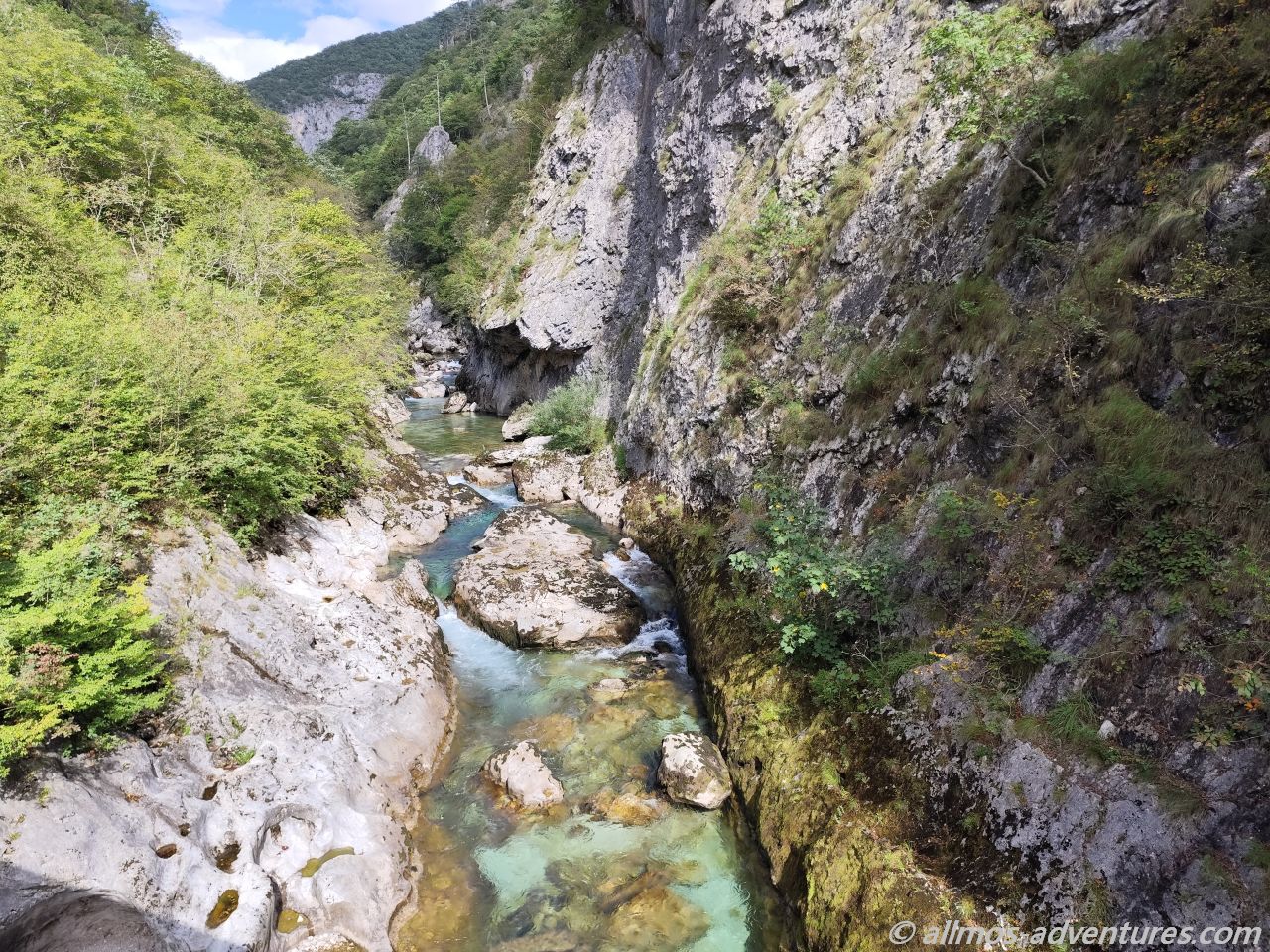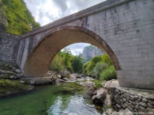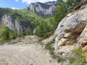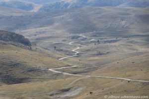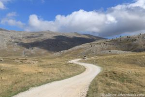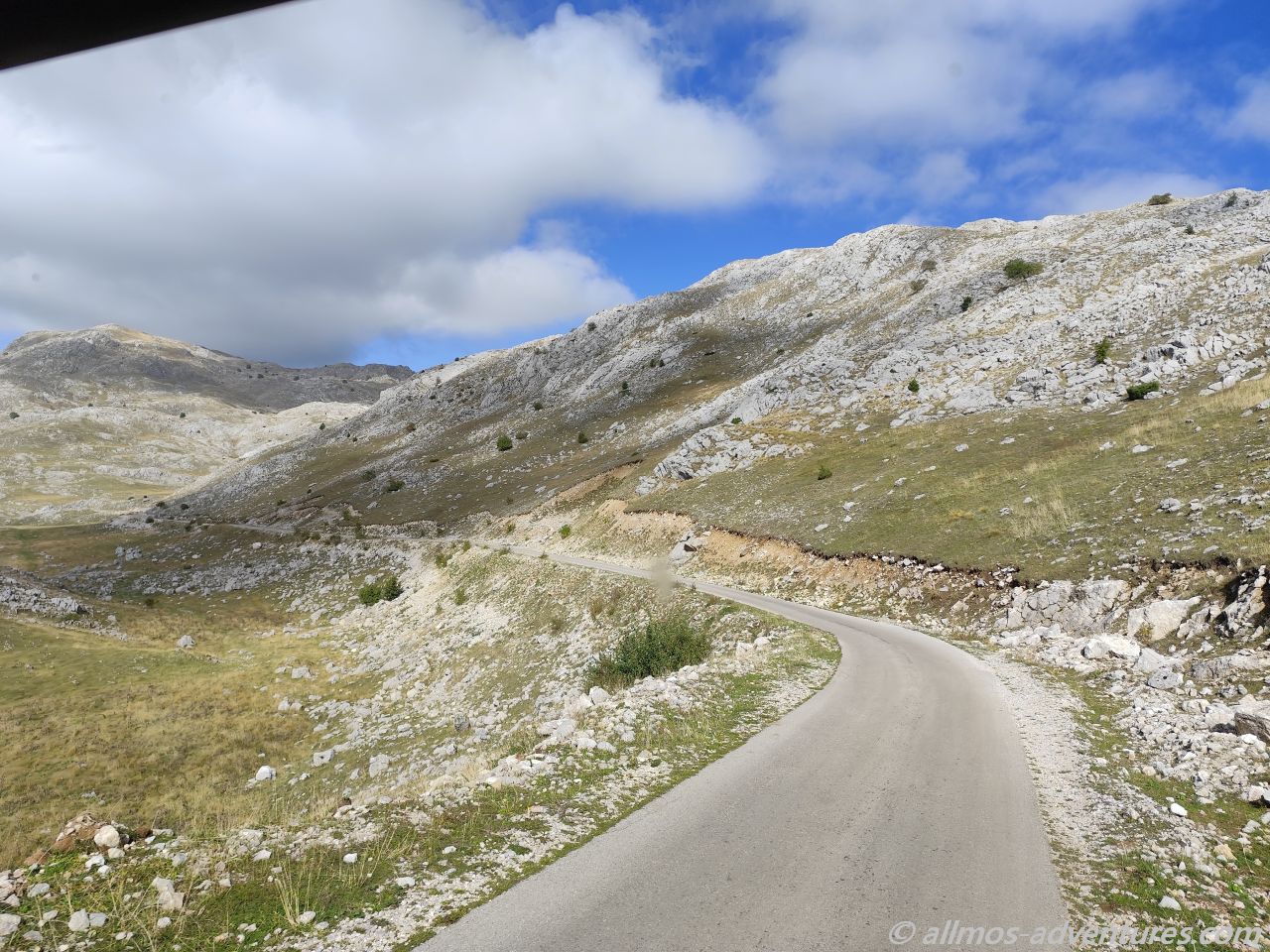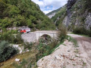 Etwas in sich hatten es die Serpentinen, als wir auf die Brücke und den Canyon Most u kanjonu rijeke Rakitnice drauf zu steuerten. Mehrmals mussten wir ein paar größere Felssteine aus dem Weg räumen. Bei dem ersten Stein, der im Weg lag, meinte ich noch ganz lapidar „ich steig mal eben aus und schieb den weg“. Nun gut, als ich dann vor dem Stein stand, musste ich erstmal lachen. Frank sah meine Not (der Stein war für mich viel zu schwer) und er erbarmte sich und schob den Stein zur Seite.