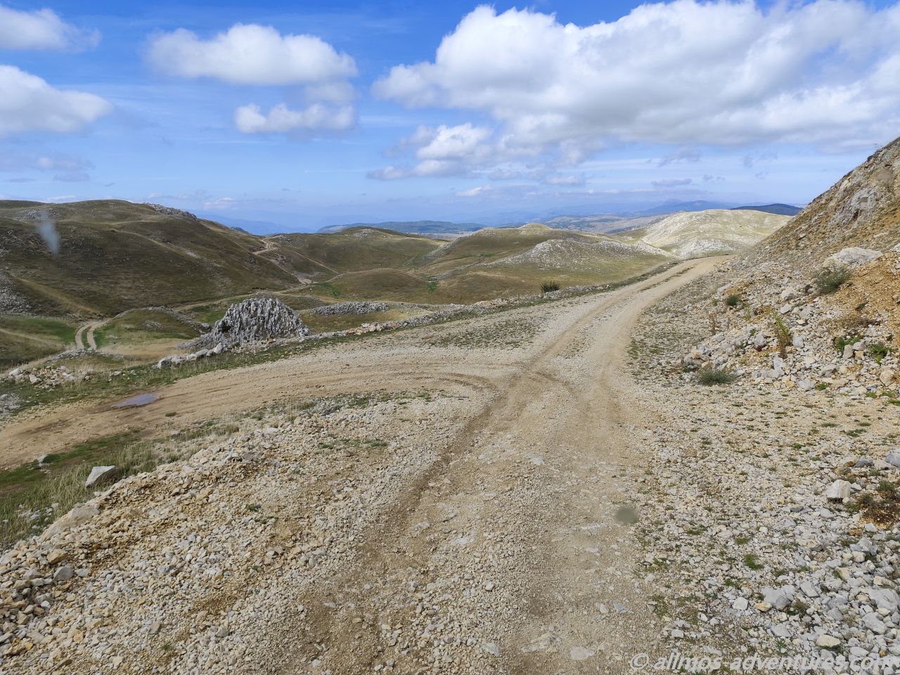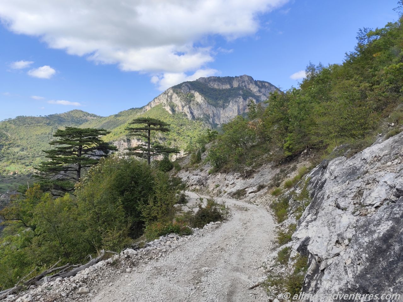 Für den Einstieg in die erste Wikiloc Piste wählten wir einen Punkt entlang der Route. Schnell machte sich Ernüchterung breit, war die Piste doch gar keine Piste, sondern Teer. Ich zweifelte schon an der Entscheidung nicht dem Original-Streckenverlauf von der Wikiloc-Strecke gefolgt zu sein. Doch wir sollten wenige Kilometer später zum einen feststellen, dass sich auf der eigentlichen Route eine Baustelle bestand und wenn von unten eine Zufahrt derzeit nicht möglich war, so wäre sie von oben bestimmt auch nicht möglich gewesen. Eine große Baumaschine versperrte die Kreuzung.