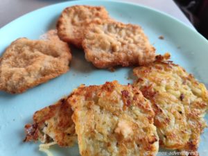 Zum Abendessen zauberte Frank uns Reibekuchen und Schnitzel. Ich war währenddessen mit Tippen dieses Beitrags beschäftigt.