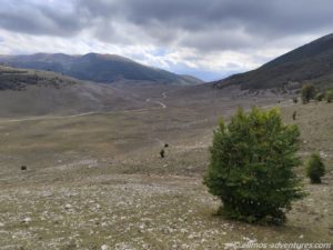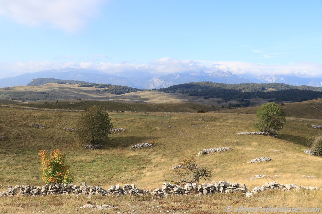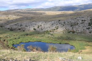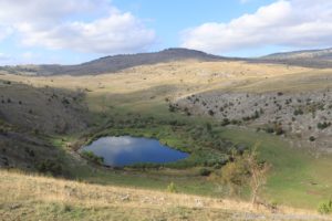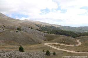 Nach dem Wald folgte eine hügelige Landschaft mit nur wenig Bäumen. Richtig schön sah die Umgebung aus. Windig war es dort allerdings und die richtige Stellplatzwahl zu treffen war nicht so leicht. Letztlich entschieden wir uns für eine schöne Stelle, mit mittelmäßigem Wind. Bis nach Lukomir wären es noch fast 14 Kilometer.