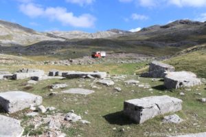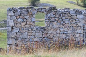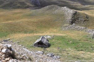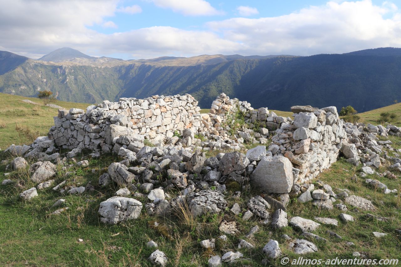 Neben den nicht neuen, aber auch nicht ganz so alten kleinen halb gemauerten, aber wohl nie fertiggestellten Gebäuden, neben denen wir standen, entdeckte ich einige alte zerfallene Steinhäuser. Es ist halt alles weit ab vom Schuss, wobei wir auf unserem Weg erstaunt waren, wo sich noch überall ein paar bewohnte Häuser und Hütten befanden.