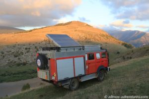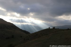 Der Schäfer kam mit seiner Herde später wieder von dem Hügel runter, ohne bei uns zu stoppen. Noch später kam eine Gruppe von vier kleinen Geländewagen vorbei. Wir vermuten mal, das die in Lukomir übernachten werden.