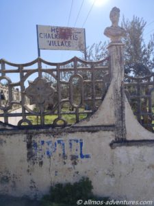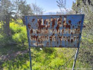 Auf dem Weg nach Eretria hatten wir am Mittwoch ein rostiges Schild mit der Aufschrift „Hotel Chalkidiotis Village“ entdeckt. Klingt, als könnte es sich um ein verlassenes Hotel handeln. Unser Interesse war definitiv geweckt, doch nach der schlaflosen Nacht auf der Fähre wollten wir am Mittwoch einfach nur ankommen. Ich markierte die Stelle bei Gockel.