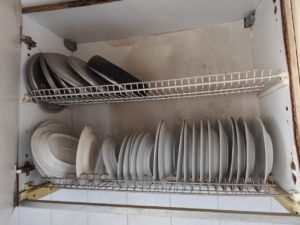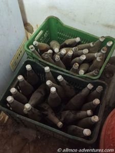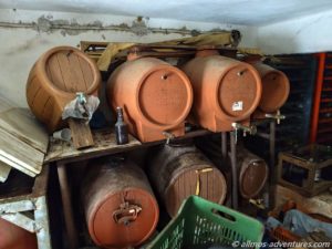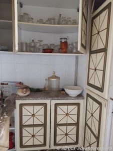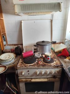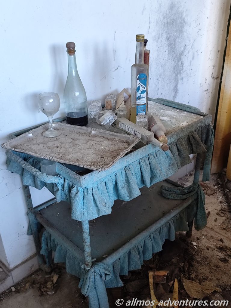 Wir hatten den Eindruck, dass von heute auf Morgen die Villa plötzlich verlassen wurde. Ansonsten konnten wir uns nicht erklären, warum der komplette Hausrat inklusive Kleidung und allem, was in ein Haus gehört noch vorhanden war. Sogar ungeöffnete Kaffeepackungen lagen im Küchenregal. Fässer mit irgendeinem Inhalt, befanden sich im hinteren Bereich der Einliegerwohnung. In 1 Liter Flaschen war Olivenöl abgefüllt worden.