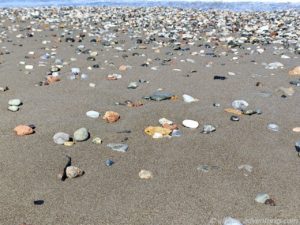 Als das Holz das Meer erreichte, verteilte dieses sich, dank der Wellen, über den kompletten Strandabschnitt, also ungefähr über einen Kilometer.