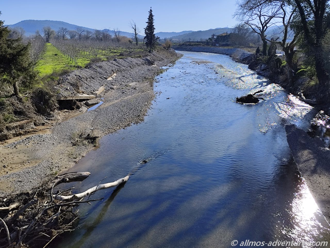 Vom Lake Troupio hielten wir uns in nördliche Richtung. Kria Vrisi, welches sich auf der Ostseite von Euböa befindet, war unser Ziel. Die Landschaft war inzwischen wieder flacher. Wir fuhren durch ein paar kleinere Dörfer und hatten oft einen Fluss neben uns.