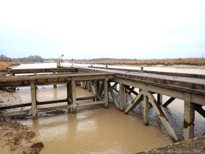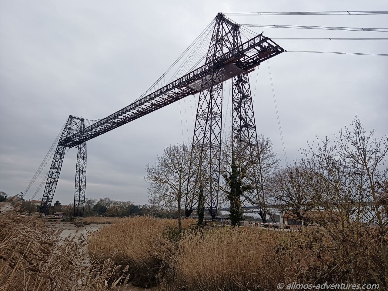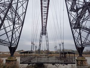 Wieder warm geworden fuhren wir nun auch noch die 1,5 km bis zum Pont Transbordeur. Leider war die Saison vorbei und die Transbordeur im Winterschlaf. Schade, wir hätten gerne im Einsatz gesehen, wie die Plattform über den Fluss schwebt.