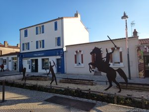 Meine Langschläfrigkeit war nun mal nicht zu ändern. Nach dem Frühstück wollten wir uns zumindest von außen das Schloss von Richard Löwenherz anschauen (Chateau de Talmont-Saint-Hilaire). Leider war ein riesiges Baugerüst mit Plane von der Stadtseite um das Chateau herum platziert. Na toll. Auch die Eglise Saint-Pierre hatte nicht geöffnet. In deren Eingangsbereich soll sich eine Uhr aus dem Mittelalter befinden. Unverrichteter Dinge gingen wir zu Allmo zurück. Immerhin war es sonnig und weniger windig als die Tage zuvor.