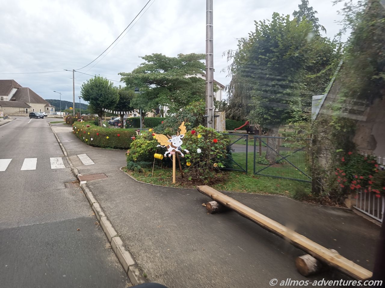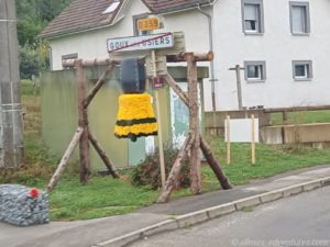 In einem Dorf waren Hecken und Zäune mit selbstgemachten Blumen geschmückt, Tiere aus Holz (?) schauten über Zäune oder standen an diversen Gebäuden. Wir vermuten, dass dies im Zusammenhang mit dem Erntedankfest oder einem anderen landwirtschaftlichen Fest stehen muss. Es sah auf jeden Fall sehr schön und interessant aus.