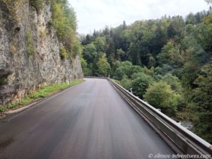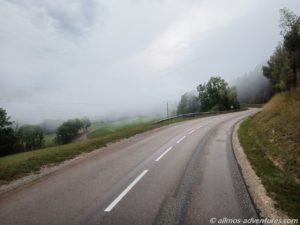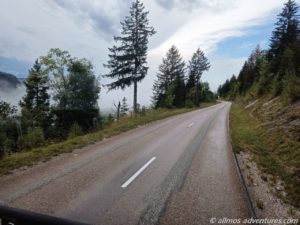 Die lange Fahrt über die Landstraßen war schon etwas anstrengend und kostete immens Zeit. Wobei wir viel tolle Natur bestaunen konnten. Etwas über 1000 Höhenmeter erklomm Allmo in der Spitze. Das Tal und die umliegenden Hügel waren dort in Dunstwolken gehüllt.