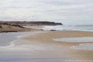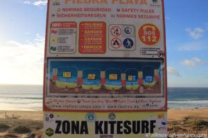 Bei einem kurzen Abendspaziergang entdeckten wir, dass den Strandabschnitten bestimmte Aktivitäten zugeordnet sind. Es gibt einen kleinen Bereich zum Schwimmen, einen anderen Bereich für die Surfer, der nächste ist für Kitesurfer, usw. Wir parkten in der Kite-Surfer Zone. Wobei sich am Abend nur drei Personen darin versuchten.