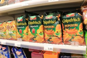 Den noch bewölkten Himmel nutzten wir zu einem Spaziergang nach El Cotillo. Wir benötigten noch Brot für die nächsten Tage. Die auf Karten-Gockel angezeigte Bäckerei am nördlichen Ende des Dorfes war jedoch eher ein Café. Also kauften wir unser Brot und zwei Apfel-Teilchen bei dem Supermarkt HiperDino. Die hatten in dem Supermarkt sogar eine recht große Auswahl. Vor dem Regal mit den Chips bekam Frank leuchtende Augen. Standen dort doch tatsächlich Funny Frisch Chips ungarisch. Bei dem Preis von 3,65 Euro für 150 Gramm blieben die Chipstüten auch weiterhin im Regal stehen.