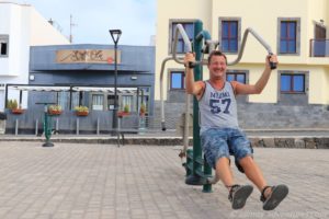 Für wenige Sekunden hatte Frank den Ehrgeiz sich im Freiluft-Fitnessstudio sportlich zu betätigen. Es fehlten jedoch die Duschen, so das er schnell aufgab.
