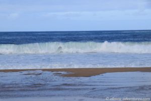 Das Meeresrauschen, welches eher einem Grummeln glich, ließ mich irgendwann in der Nacht nicht mehr weiterschlafen. Zudem schien der Vollmond direkt in unser Zelt. Bedingt durch die Zeitumstellung von Winter- auf Sommerzeit waren wir natürlich früher als üblich wach.
