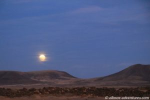 Während im Westen die Sonne unterging, ging der Mond im Osten auf. Voll und rund. Eine partielle Mondfinsternis war für heute gemeldet. Doch es war nur eine kleine Ecke vom Mond, die von einem Schatten verdeckt wurde. Also nicht wirklich spektakulär.