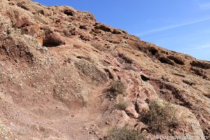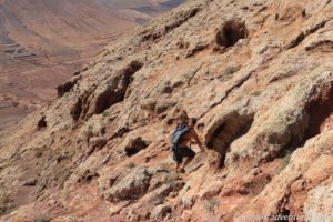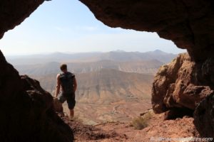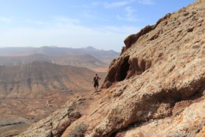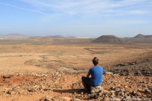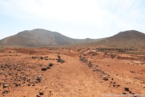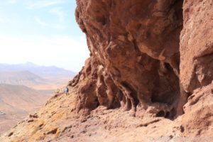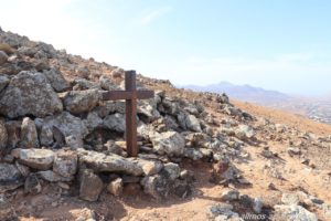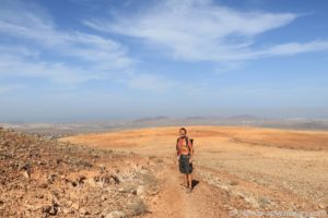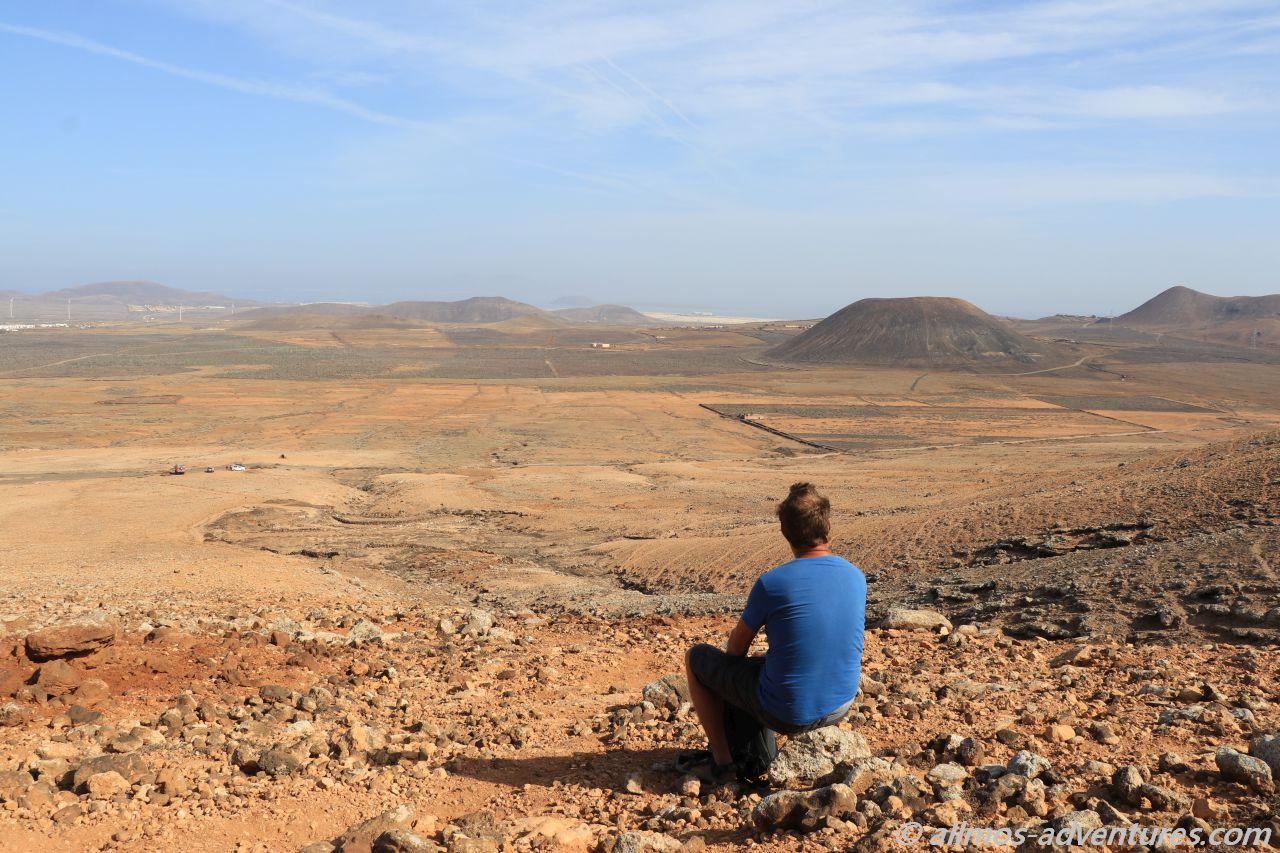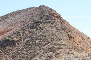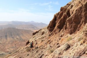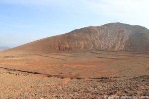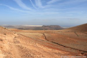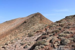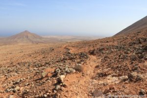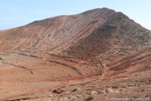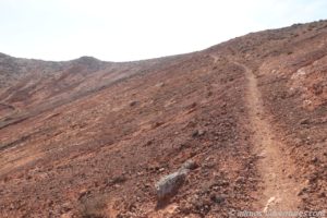 Wir waren uns einig, dass wir auf die Spitze des Berges Montana de Escanfraga (mit 529 Metern Höhe der höchste Vulkankegel auf Fuerteventura) sehr gut verzichten können, denn das hätte 120 Höhenmeter innerhalb weniger Meter bedeutet. Das müssen wir uns nicht antun. Stattdessen schlugen wir den gleichen Weg ein, den wir auch gekommen waren. Es ging wieder am Kraterrand vorbei und dann auf den breiteren Weg.