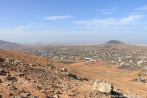Immerhin entschädigte der Ausblick auf das Meer, die Vulkande und die Dünen von Corralejo ein wenig für die Strapazen des Aufstiegs. Die Drachen waren aus der Ferne jedoch nicht neben den Hotels an den Dünen zu erkennen.