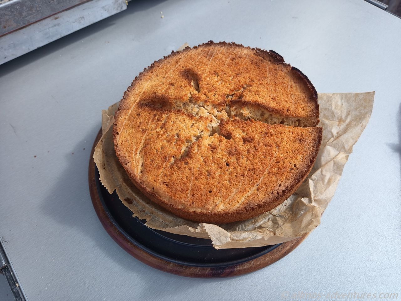 Weil der Tag heute so schön entspannt war, backte ich uns mittags einen Apfel-Löffelbiskuit-Kuchen. An das Rezept hielt ich mich nicht ganz so genau. Zum einen fehlte uns Joghurt und zum anderen konnte ich nicht alle Zutaten ordentlich abmessen. Geschmeckt hat’s gut und das ist die Hauptsache.