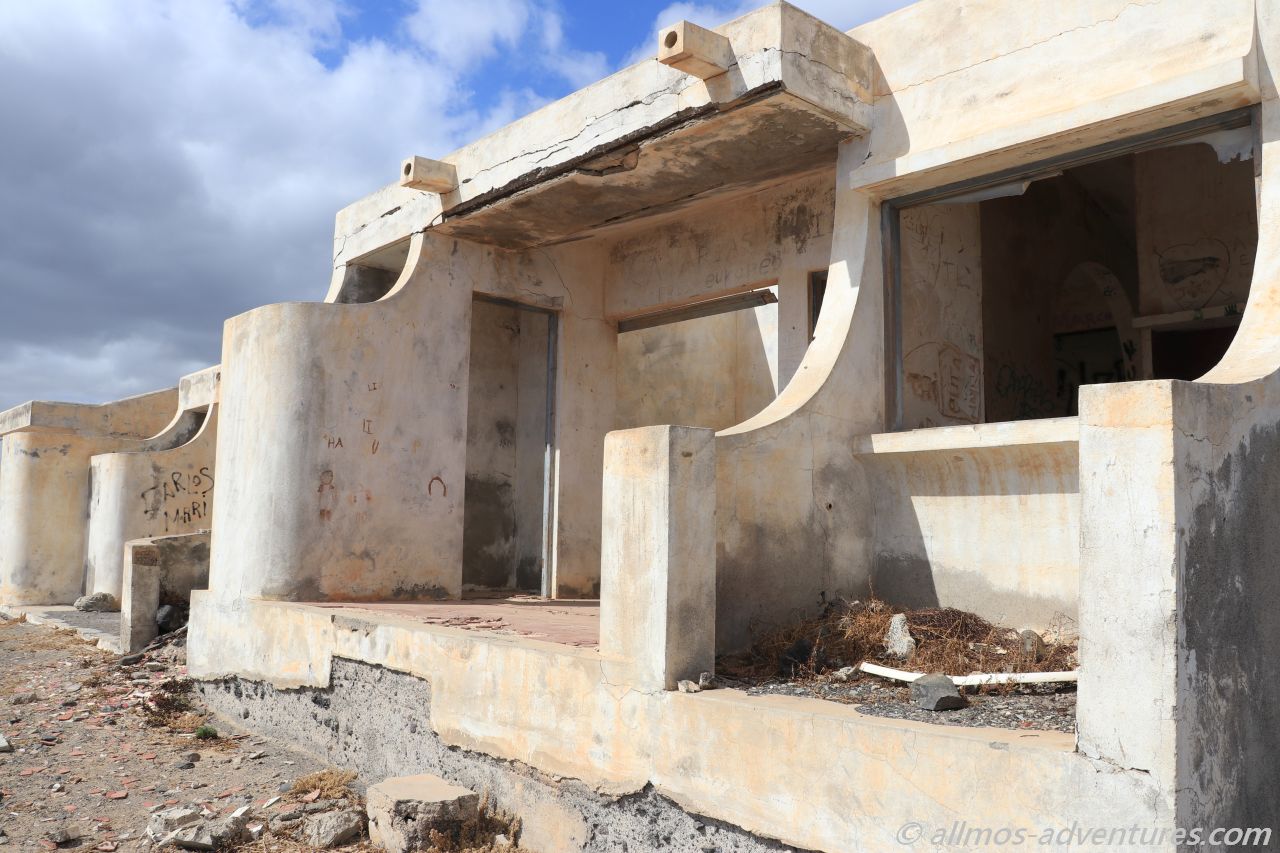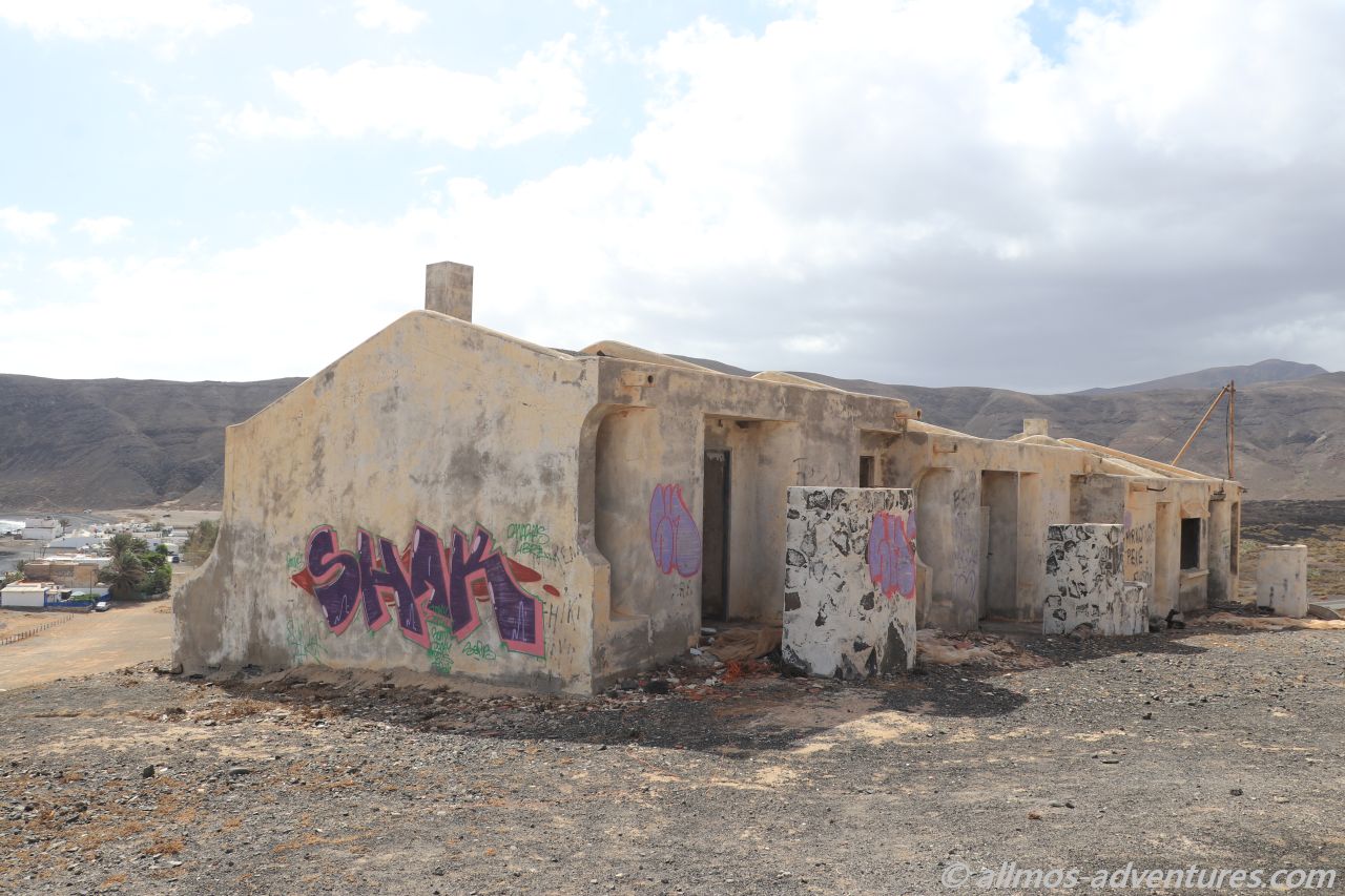 Mit Blick auf das kleine Dorf Pozo Negro und die angrenzende Bucht befand sich ein verlassenes Reihenhaus. Also drei Häuser in einer Reihe. Schade, warum so vieles dem Verfall gewidmet ist. Mit der offen gestalteten Küche mit Meerblick ließ es sich dort bestimmt gut wohnen. Am Strand im Dorf stand ein Wohnmobil geparkt. Mit den Felsen zu beiden Seiten und der überschaubaren dörflichen Bebauung ist der Platz zum Übernachten auch nicht verkehrt.