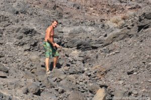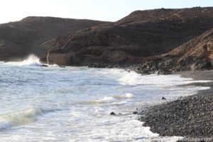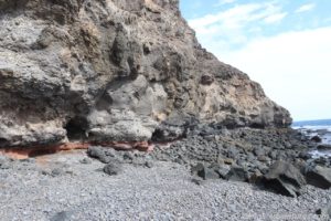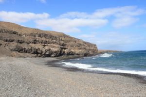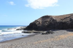 Bei der Playa de Leandro handelt es sich um eine kleine Bucht aus Kieselsteinen. Zu beiden Seiten durch Felsen eingerahmt wäre es bestimmt ein guter Platz zum Schnorcheln. Doch dafür war der Wellengang dann doch zu stark. Außerdem gab es kaum bis keinen Handyempfang und den Rettungsring konnte auch irgendwer gebrauchen. Da blieben wir doch lieber aus dem Wasser raus.