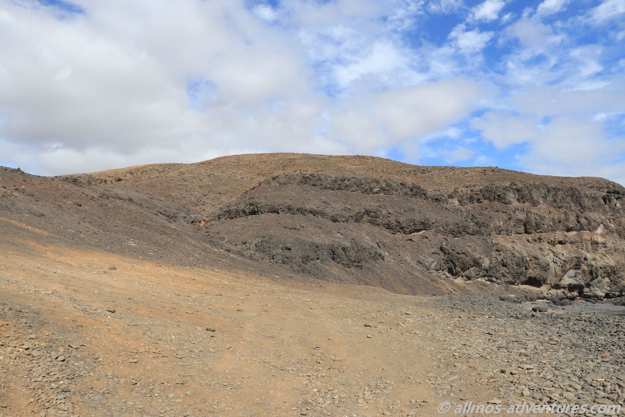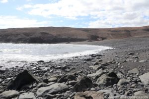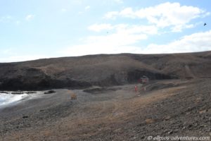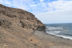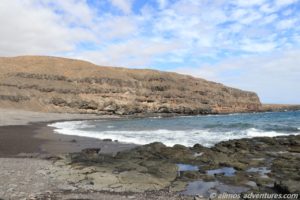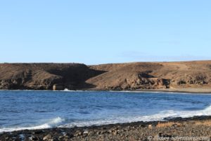 Nach dem kurzen Halt folgten wir der Piste und den Kurven, die Hügel hinauf und dann hinunter bis zum Strand Playa de Leandro.