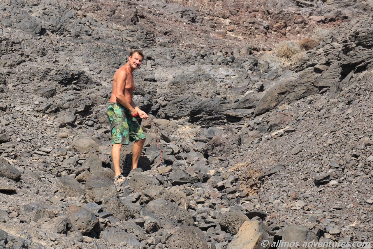 Himmlisch ruhig war es in der Nacht. Das Meer war kaum zu hören. Es stand die Überlegung an, eine oder zwei Buchten weiterzufahren oder einfach hier zu bleiben. Wir entschieden uns für Letzteres. Auch wenn die zweite Bucht nicht nur steinig grau, sondern der Flusslauf etwas grün bewachsen gewesen wäre, so schreckte uns die Information ab, dass der Platz leicht zugängig ist. Was für uns mehr Trubel/mehr Menschen bedeuten würde. Also blieben wir.