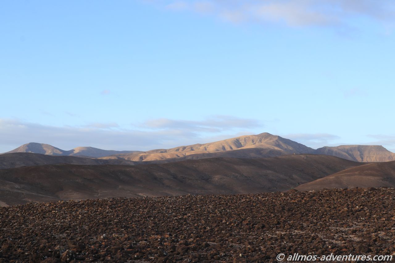 Der Wind blies vom Meer, so dass wir uns mit den Stühlen auf die andere Seite von Allmo setzten, mit Blick auf die Hügel, die uns umgeben. Sonne und Wolken wechselten sich ab, wobei die Wolken überwiegend. Mir wurde es irgendwann zu schattig und ich verzog mich in Allmo.