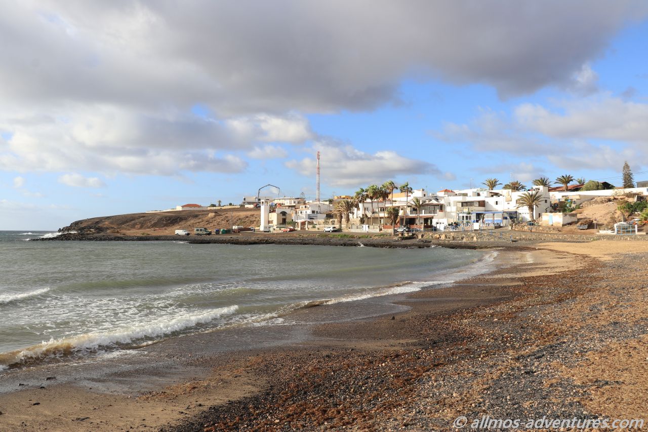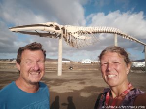 Bei dem Wal-Skelett handelt es sich um einen weiblichen Finnwal, 19,5 Meter lang, der tot am Strand von Majanicho im Jahr 2000 gefunden wurde. Der Wal verendete qualvoll, weil sich Taue um den Kopf gewickelt hatten und der Wal nicht mehr richtig fressen konnte. Welch eine Schande! Finnwale sind die zweitgrößten Tiere auf der Erde und können bis zu 24 Meter lang und bis zu 50 Tonnen schwer werden. Die direkt angrenzenden Salinen ignorierten wir und verschwanden schnell wieder.