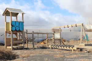 Die Spielgeräte auf dem kleinen Spielplatz waren noch halbwegs intakt. Zumindest was aus Holz und Tau war. Nur das Metall war im Laufe der Zeit verrostet.